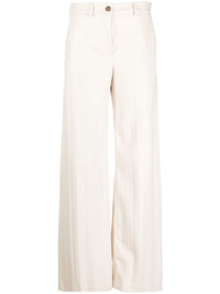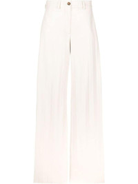 Highlights - Off-white - High-waisted - Belt loops - Button fly fastening - Two side slit pockets - Two rear welt pockets - Straight leg Made in Italy Composition Polyester 100% Fitting Information This piece fits true to size. We recommend you get your regular size Designed to be fitted at the waist and hips, loose over the leg Made with a mid-weight fabric Model Measurement Height 5 ft 11 in(1.81 m) Bust/Chest 36.6 in(93 cm) Hips 37.4 in(95 cm) Waist 24.8 in(63 cm)