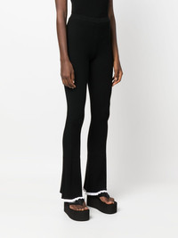 intarsia-knit logo high-waisted trousers Highlights - Black - Ribbed knit - Intarsia-knit logo - Contrasting trim - High-waisted - Flared - Ruffle cuffs Made in Italy Composition Viscose 70%, Polyester 30% SIZE & FIT Model measurements Height 5 ft 10 in(1.78 m) Bust/Chest 31.49 in(80 cm) Hips 37 in(94 cm) Waist 23.62 in(60 cm) FittingInformation Designed with a flared hem, these trousers allow for a close fit at the waist with a slim fit over the leg and widening towards the hem The elasticated waist allows for a comfortable fit Made with a midweight knit, this piece offers some stretch This piece fits true to size – take your usual size Washing instructions Machine Wash