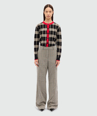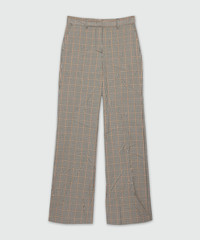 Flared trousers in a viscose blend with a wrinkled-effect check pattern. High-waisted with belt loops, front zip and concealed hook fastening. Side slant pockets, back welt pockets. MSGM label on the back. Regular fit. The model is wearing a size S/40. CODE: 3941MDP15-257619-02 Details and fit - 65% PL / 32% VI / 3%