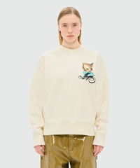 Ivory jersey sweatshirt with "Cute Kitty" graphic and cursive MSGM logo