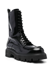 lace-up ankle-high boots Classic lace-up boots are presented by MSGM for their latest collection. Crafted from leather to a ankle-high silhouette, they also offer a zip at the side for easier wear. Highlights - Black - Calf leather - Ankle-length - Debossed logo to the side - Pull-tab at the heel - Front lace-up fastening - Side zip fastening - Round toe - Ridged rubber sole Made in Italy Composition Outer: Calf Leather 100% Lining: Calf Leather 100% Sole: Rubber 100% SIZE & FIT Measurement HEEL 1.77 in(4.5 cm) HEIGHT 9.64 in(24.5 cm) PLATFORM 1.18 in(3 cm)