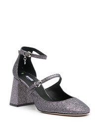 logo-charm 90mm glitter pumps Highlights - Silver-tone - Calf leather - Logo charm - Glitter detailing - Round toe - Buckle-fastening ankle strap - Buckle-strap fastening - Branded insole - 90mm block heel - Leather sole Made in Italy Composition Lining: Calf Leather 100% Outer: Fabric 100% Sole: Calf Leather 100% SIZE & FIT Measurement CIRCUMFERENCE 9.44 in(24 cm) HEEL 3.54 in(9 cm) HEIGHT 3.14 in(8 cm) Sole height 0.39 in(1 cm)