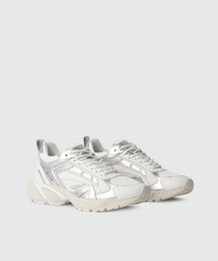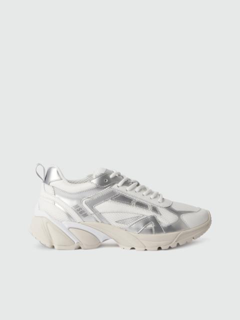 Silver and white leather Vulcano sneakers with mesh inserts