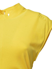 logo-embroidered maxi dress Highlights - Canary yellow - Rear button fastening - Band collar - Cap sleeves - Fitted waistline Made in Italy Composition Cotton 95%, Elastane 5%
