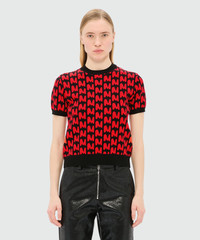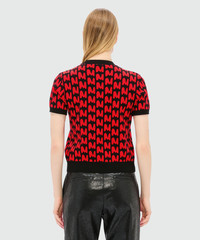 Black short-sleeved jacquard sweater with "TheMwave" motif
