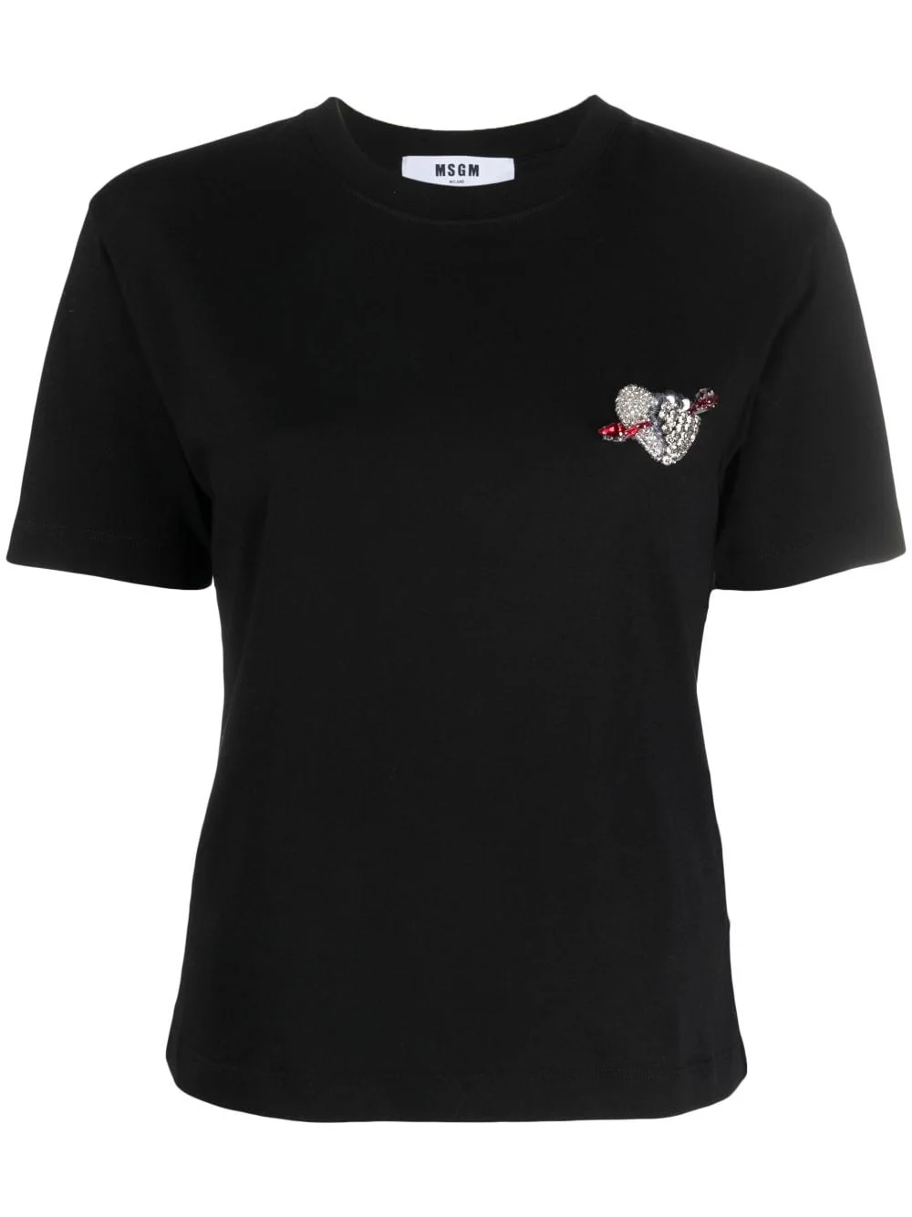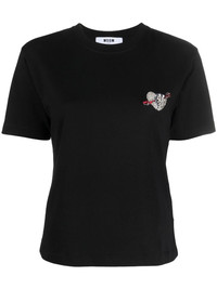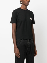 logo-print cotton T-shirt Highlights - Jet black - Cotton - Logo print to the rear - Applique detail - Round neck - Short sleeves - Straight hem Made in Italy Composition Cotton 100%, glass 65%, PVC 20%, Brass 15% SIZE & FIT Model measurements Height 5 ft 10 in(1.78 m) Bust/Chest 31.49 in(80 cm) Hips 37 in(94 cm) Waist 23.62 in(60 cm) FittingInformation Designed for a slim fit that sits just away from the body offering a close yet comfortable fit Made from a midweight non-stretch fabric, this piece offers minimal elasticity when worn This piece fits true to size – take your usual size Washing instructions Hand Wash