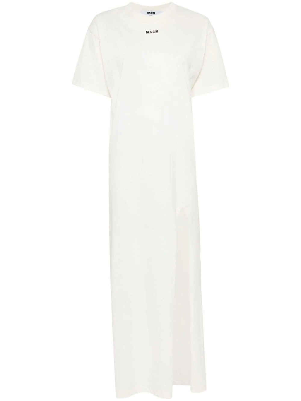 logo-print cotton T-shirt dress Highlights - White - Cotton - Logo print at the chest - Crew neck - Short sleeves - Front slit - Straight hem Made in Italy Composition Body: Cotton 100% SIZE & FIT Model measurements Height 5 ft 9 in(1.75 m) Bust/Chest 31.88 in(81 cm) Hips 35.03 in(89 cm) Waist 23.22 in(59 cm) FittingInformation Designed to be unstructured, offering a loose fit throughout Made from a midweight non-stretch fabric, this piece offers minimal elasticity when worn This piece fits true to size – take your usual size Washing instructions Hand Wash