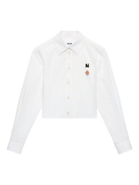 logo-print cropped shirt Highlights - White - Long sleeves - Cropped hem - Front button fastening - Floral embroidery Made in Italy Composition Fabric 100% Washing instructions Read Manufacturer Guidelines