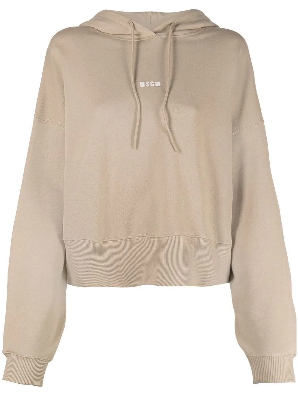 logo-print drawstring hoodie A mirror of MSGM's casual DNA, this beige-hued sweater is crafted from soft cotton in a jersey fleece texture. The relaxed appeal is further enhanced by the adjustable drawstring hood. Made in Italy Composition Cotton 100% SIZE & FIT Model measurements Height 5 ft 10 in(1.78 m) Bust/Chest 30.31 in(77 cm) Hips 36.61 in(93 cm) Waist 24.8 in(63 cm) FittingInformation This piece fits true to size. We recommend you get your regular size Cut for a loose fit Made with a mid-weight fabric Washing instructions Hand Wash