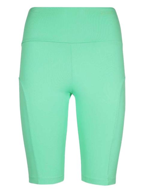 logo-print high-waist shorts Highlights - Light green - High waist - Logo print - Panelled design - Close-fitting Made in Italy Composition Polyamide 91%, Elastane 9% Washing instructions Read Manufacturer Guidelines