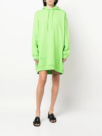 logo-print hooded jumper dress lime green/white cotton jersey fleece logo print at the hood drawstring hood slip pocket to the front long sleeves straight hem Made in Italy Composition Cotton 100% SIZE & FIT Model measurements Height 5 ft 10 in(1.78 m) Bust/Chest 31.49 in(80 cm) Hips 36.22 in(92 cm) Waist 25.59 in(65 cm) FittingInformation This piece fits true to size. We recommend you get your regular size Cut for a loose fit Made with a mid-weight fabric Washing instructions Hand Wash