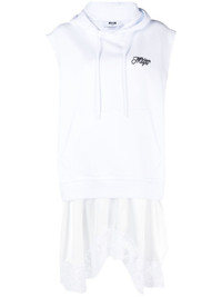 logo-print lace-trim minidress Highlights - White/black - Cotton - Logo print at the chest - Lace trim - Drawstring hood - Front pouch pocket - Sleeveless - Side slit - Above-knee length Made in Italy Composition Polyester 100%, Cotton 100% SIZE & FIT Model measurements Height 5 ft 10 in(1.78 m) Bust/Chest 33.07 in(84 cm) Hips 35.82 in(91 cm) Waist 26.96 in(68.5 cm) FittingInformation Designed to be unstructured, offering a loose fit throughout The adjustable drawstring means that you can adjust this piece’s fit to suit your comfort and preference Made from a midweight non-stretch fabric, this piece offers minimal elasticity when worn This piece fits true to size – take your usual size