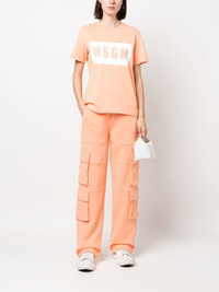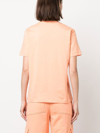 logo-print short-sleeve T-shirt light orange cotton logo print to the front round neck short sleeves straight hem Made in Italy Composition Cotton 100% SIZE & FIT Model measurements Height 5 ft 10 in(1.78 m) Bust/Chest 33.46 in(85 cm) Hips 36.22 in(92 cm) Waist 23.22 in(59 cm) FittingInformation This piece fits true to size. We recommend you get your regular size Cut for a relaxed fit Made with a mid-weight fabric Washing instructions Hand Wash