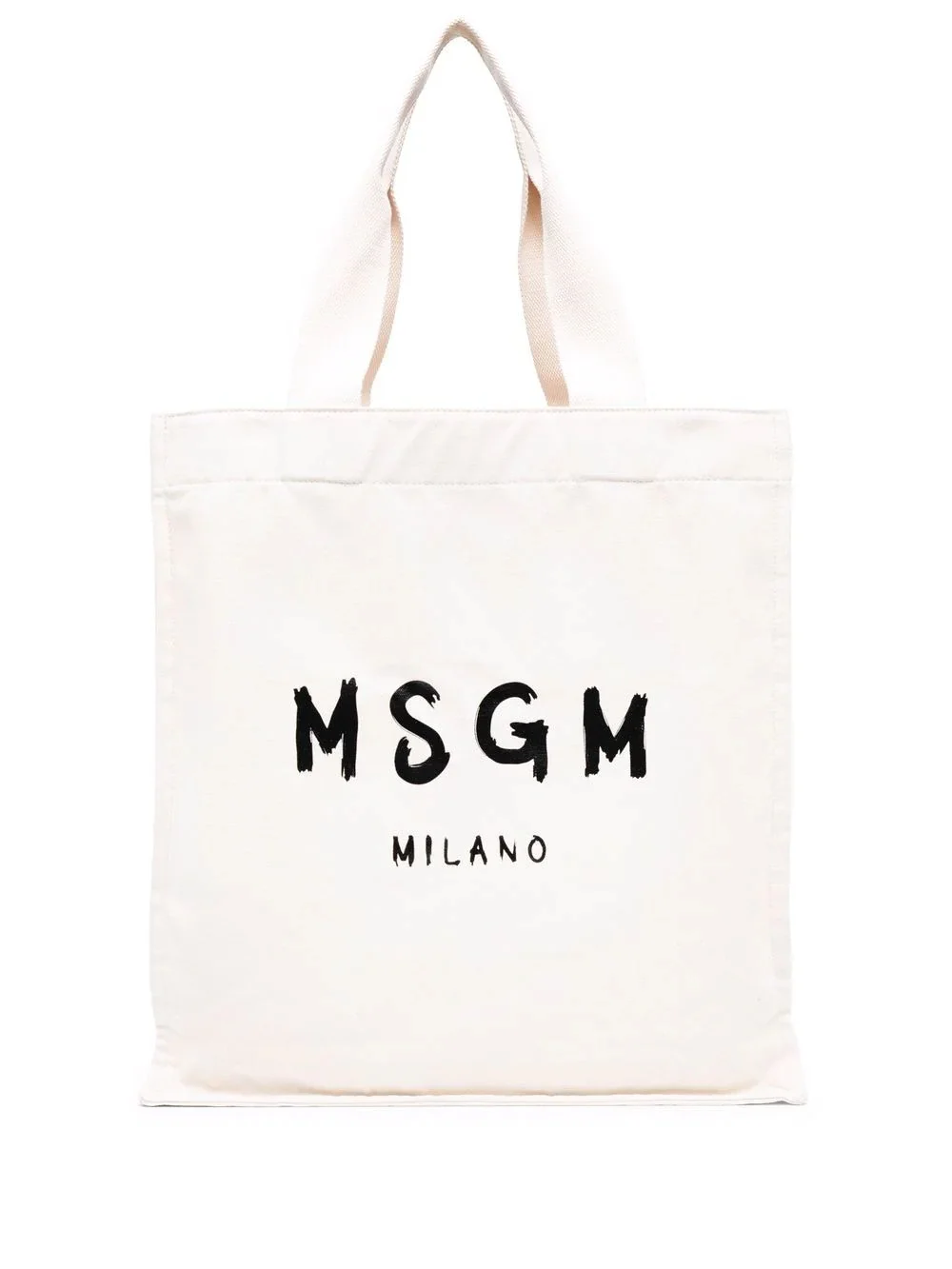 logo-print tote bag MSGM updates the classic tote-bag silhouette with a contrasting logo print across the front. Crafted from beige cotton, the round-top handle design is a practical statement piece. Imported Composition Outer: Cotton 100% Lining: Polyester 90%, Cotton 10% SIZE & FIT Model measurements Height 5 ft 10 in(1.77 m) Bust/Chest 35.03 in(89 cm) Hips 35.03 in(89 cm) Waist 23.62 in(60 cm) Measurement DEPTH 4.72 in(12 cm) HANDLE 10.23 in(26 cm) HEIGHT 17.71 in(45 cm) WIDTH 17.32 in(44 cm) Washing instructions Dry Clean Only