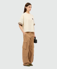 Cream cotton T-shirt with check print poplin details