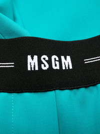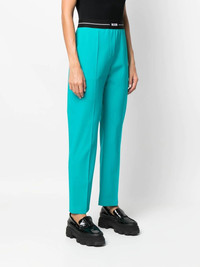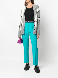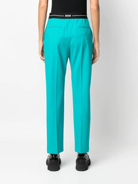 logo-waist slim tailored trousers teal blue virgin wool blend pressed crease logo waistband slip-on style straight leg two side slit pockets two rear welt pockets Made in Italy Composition Outer: Virgin Wool 96%, Elastane 4% Lining: Polyester 100% SIZE & FIT Model measurements Height 5 ft 9 in(1.76 m) Bust/Chest 33.07 in(84 cm) Hips 34.64 in(88 cm) Waist 25.59 in(65 cm) FittingInformation This piece fits true to size. We recommend you get your regular size Cut for a slim fit Made with a mid-weight stretch fabric Washing instructions Dry Clean Only