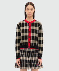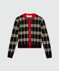 Two-tone check cardigan with contrasting details