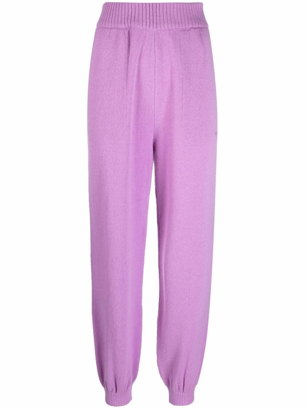 merino-blend knitted track pants lilac-purple merino-cashmere blend fine knit embroidered logo to the front elasticated waistband two diagonal pockets to the sides elasticated cuffs Made in Italy Composition Merino 70%, Cashmere 30% SIZE & FIT Model measurements Height 5 ft 9 in(1.76 m) Bust/Chest 33.07 in(84 cm) Hips 34.64 in(88 cm) Waist 25.59 in(65 cm) FittingInformation This piece fits true to size. We recommend you get your regular size Designed to be loose over the leg with a fitted waist and hem Made with a mid-weight fabric Washing instructions Machine Wash