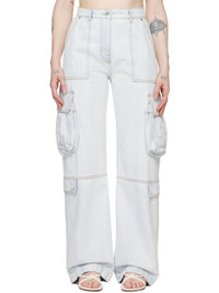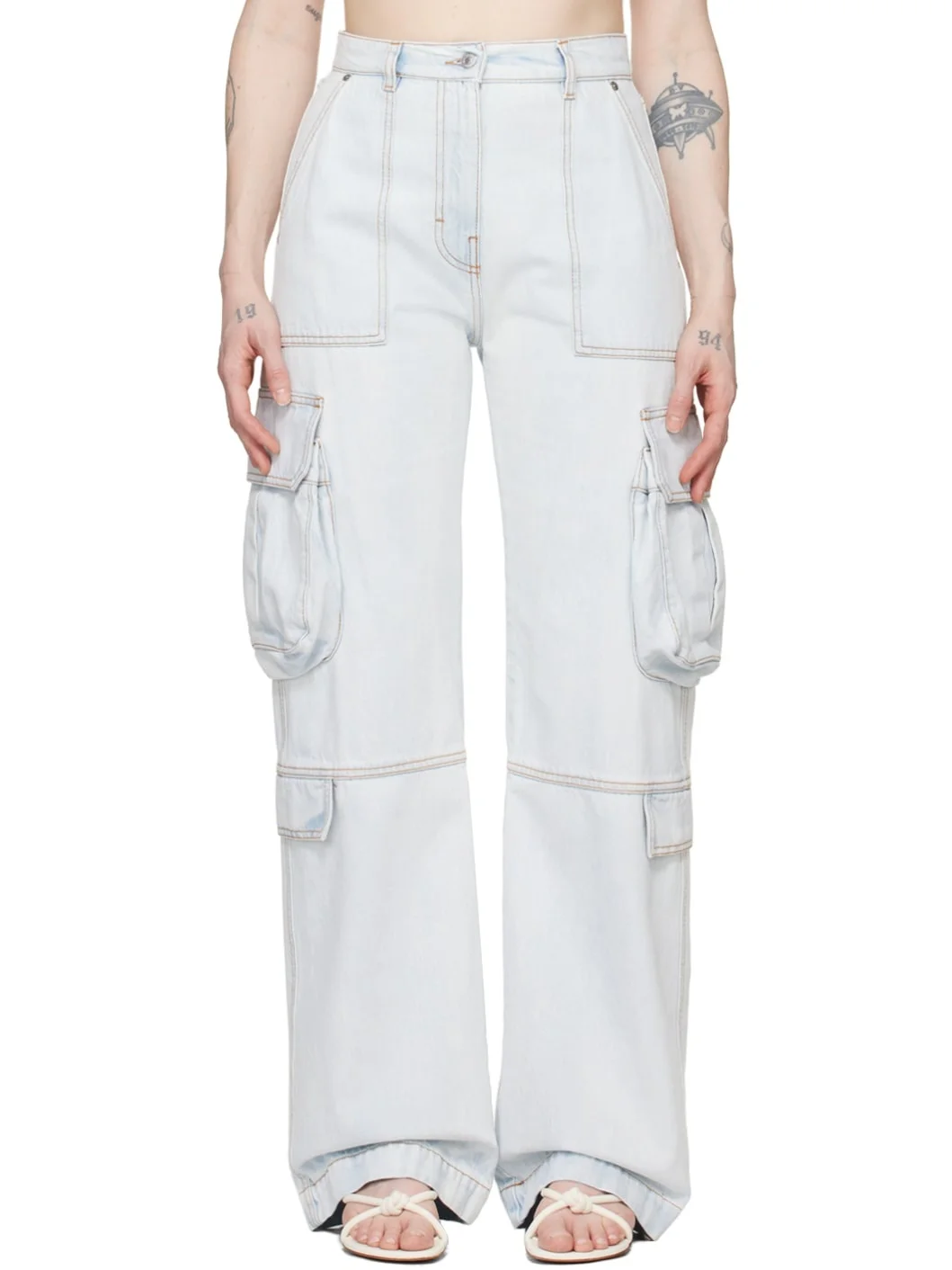 Non-stretch denim cargo pants. Fading throughout. · Belt loops · Four-pocket styling · Zip-fly · Cargo pocket at outseams · Logo patch at back waistband · Contrast stitching in tan Supplier color: Light blue 100% cotton. Made in Italy 241443F069003