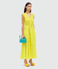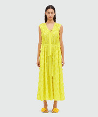 Midi dress in yellow poplin with embroidery