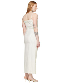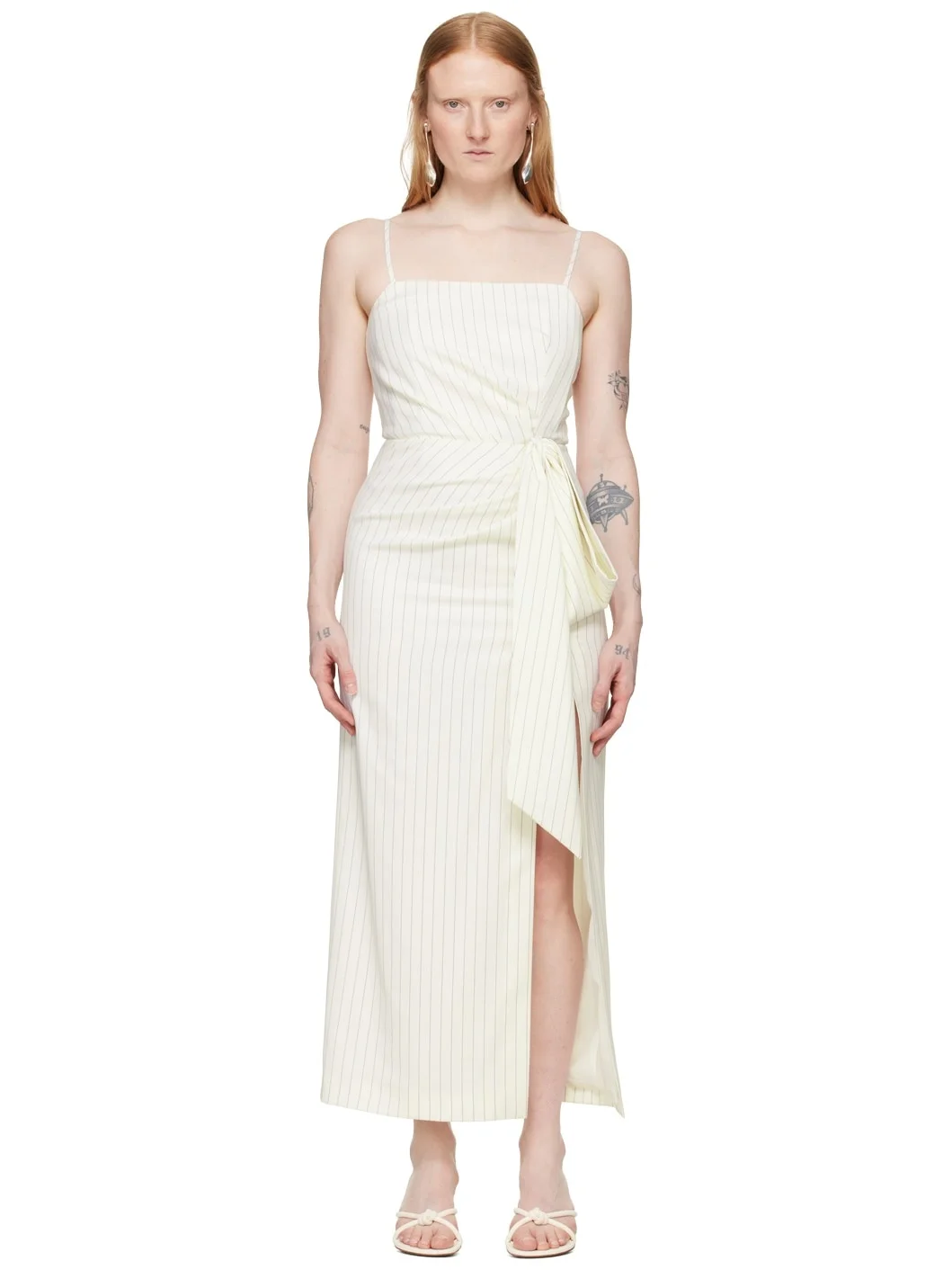 Virgin wool-blend twill dress. Pinstripes throughout. · Square neck · Gathering and bow at waist · Vented front hem · Adjustable shoulder straps · Zip closure at back · Full crepe lining Supplier color: White Body: 99% virgin wool, 1% polyester. Lining: 100% polyester. Made in Italy 241443F055007