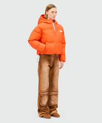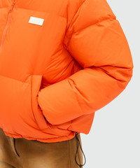 Solid-color ripstop nylon down jacket. Built-in hood, long sleeves with elastic cuffs, and all-over horizontal quilting. Adjustable drawstring hem. Logo patch on the chest. Regular fit. Model wears size S/40. CODE: 3941MDH09-257623-10 Details and fit - 100% PA