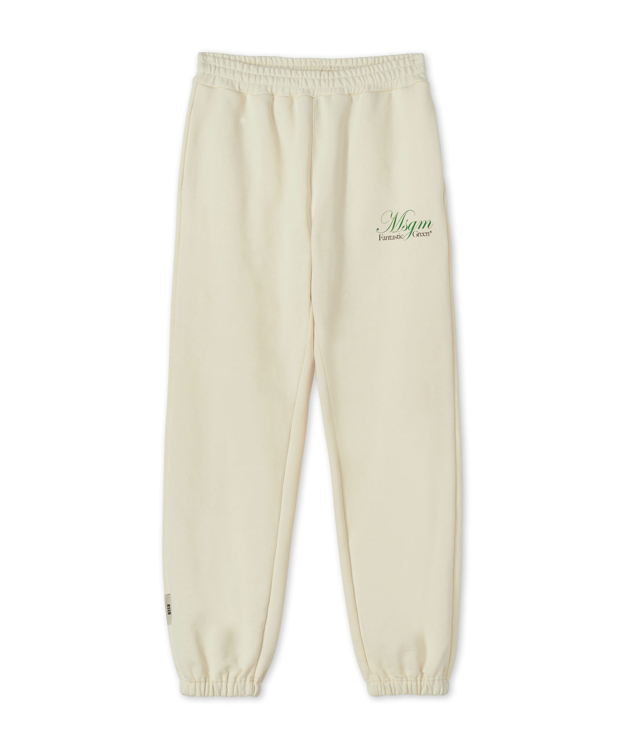 The solid color cotton jogging trousers certified by the MSGM Fantastic Green Capsule are produced in entirely sustainable material. The garment elasticized waistband and bottom. On the solid color background develops the Fantastic Green print offset in contrasting color. The graphic is positioned on the front of the leg. The trousers feature a central band with "upside down sweatshirt" processing. CODE: 3546MP02-237581-02 Details and fit - 100% COO - Model (male) wears size M / 48 (Height: 187 cm - Chest: 94 cm - Waist 74 cm - Hips: 93 cm) Model (female) wears size S / 40 (Height: 178 cm - Chest: 80 cm - Waist 59 cm - Hips: 90 cm) - For information about a product, care and materials, please call us at +39 02 9475 5343 or contact us through Chat. You can also get help by filling out the form in the Help section.