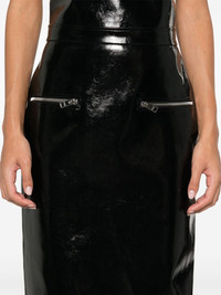 patent midi skirt Highlights - Black - Patent finish - Rear zip fastening - Two side zip-fastening pockets - Central rear vent - Column silhouette - Straight hem - Mid-length Made in Italy Composition Lining: Polyester 100% Outer: Polyester 100% SIZE & FIT Model measurements Height 5 ft 10 in(1.77 m) Bust/Chest 30.7 in(78 cm) Hips 35.03 in(89 cm) Waist 23.62 in(60 cm) FittingInformation This midi-length skirt is intended to be worn just below the waist The vented hem offers movement at the rear Made from a midweight non-stretch fabric
