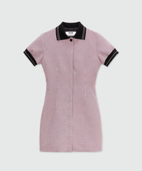 Short dress in technical fabric with a check pattern. Black knit collar and sleeve edges with white trim. Hidden front closure and visible button at the neck. Regular fit. The model is wearing size S/40. CODE: 3941MDA02-257613-12 Details and fit - 100% PL