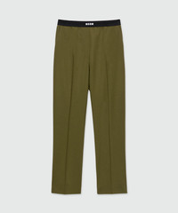 Straight-fit trousers in cool wool with a contrasting MSGM logo elastic band. Ironed center pleat, side welt pockets, and double-welt back pockets. Regular fit. The model is wearing size S/40. CODE: 3941MDP13-257605-37 Details and fit - 96% WV / 4% EA