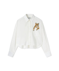 Poplin cotton is presented in a romantic note with assymetrically applied mini ruffles. This selection of garments displays the most sophisticated look of the MSGM woman, in the Sweety Preppy key. Crop top shirt with collar and long sleeves with cuffs, breast pocket with sequined cat application, front closure with buttons. Regular fit. CODE: 3541MDE10X-237608-01 Details and fit - 100% CO - Model wears size S / 40 (Height: 178 cm - Chest: 80 cm - Waist 59 cm - Hips: 90 cm) - For information about a product, care and materials, please call us at +39 02 9475 5343 or contact us through Chat. You can also get help by filling out the form in the Help section.