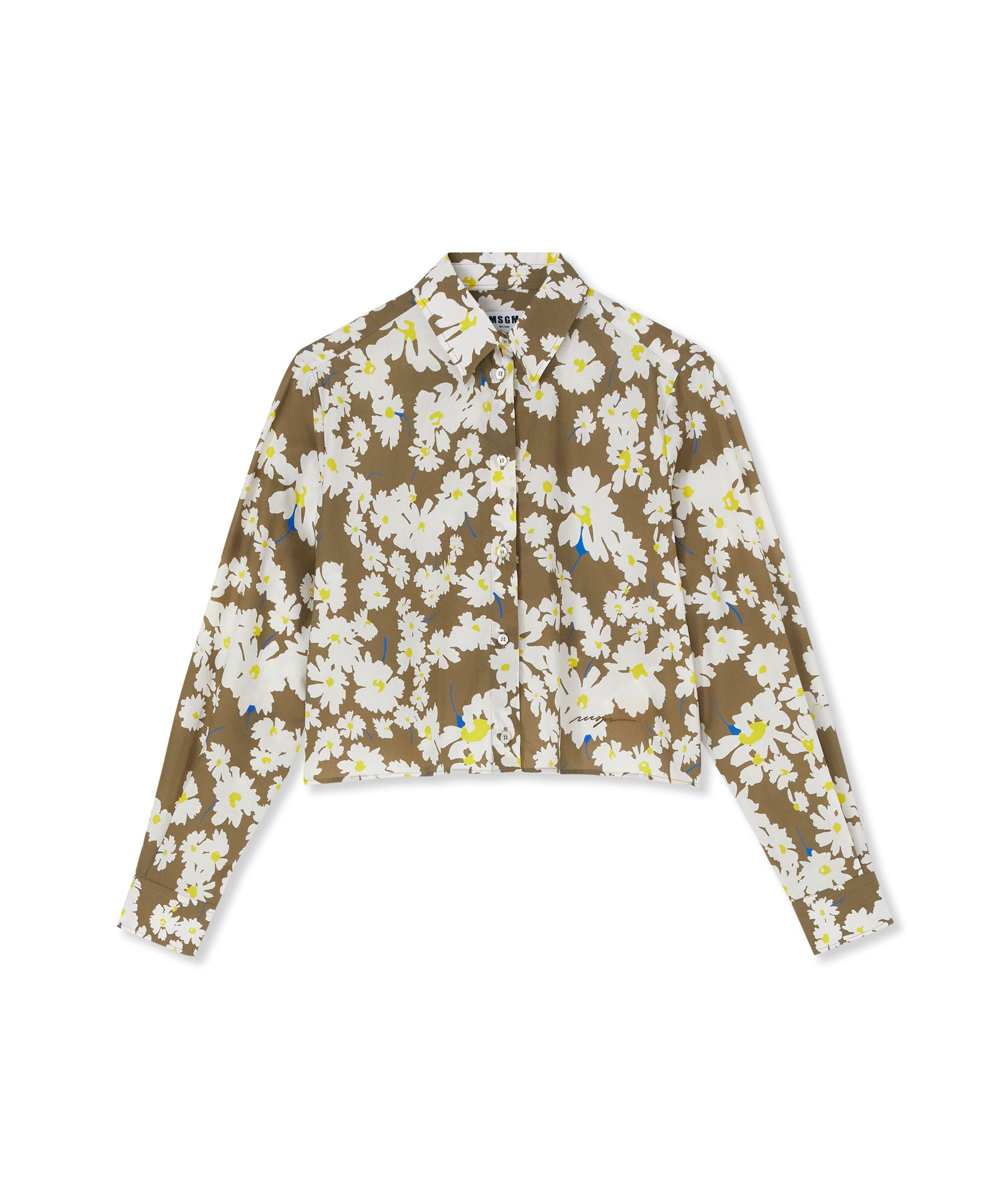 Poplin long-sleeve cropped shirt with dasiy print and embroidered MSGM logo. Classic collar and visible button closure. Regular fit. CODE: 3641MDE22X-247154-37 Details and fit - 100% CO - Model wears size S / 40 (Height: 178 cm - Chest: 80 cm - Waist 59 cm - Hips: 90 cm) - For information about a product, care and materials, please call us at +39 02 9475 5343 or contact us through Chat. You can also get help by filling out the form in the Help section.
