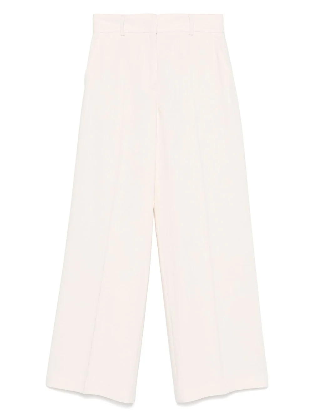 pressed-crease trousers Highlights - White - Concealed front button, hook and zip fastening - Two side slash pockets - Two rear welt pockets - Belt loops Imported Composition Outer: Viscose 91%, Polyester 8%, Elastane 1% Lining: Polyester 100% SIZE & FIT Model measurements Height 5 ft 10 in(1.78 m) Bust/Chest 31.49 in(80 cm) Hips 37 in(94 cm) Waist 23.62 in(60 cm) FittingInformation Designed with a wide-leg cut, these trousers allow for a close fit at the waist and offer a loose and roomy fit over the leg Made from a midweight stretch fabric, this piece offers elasticity and flexibility when worn Washing instructions Dry Clean Only