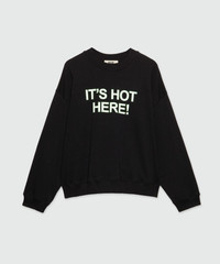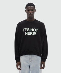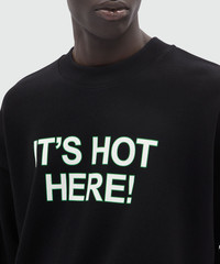 Black organic cotton sweatshirt with quotes "IT'S HOT HERE!"