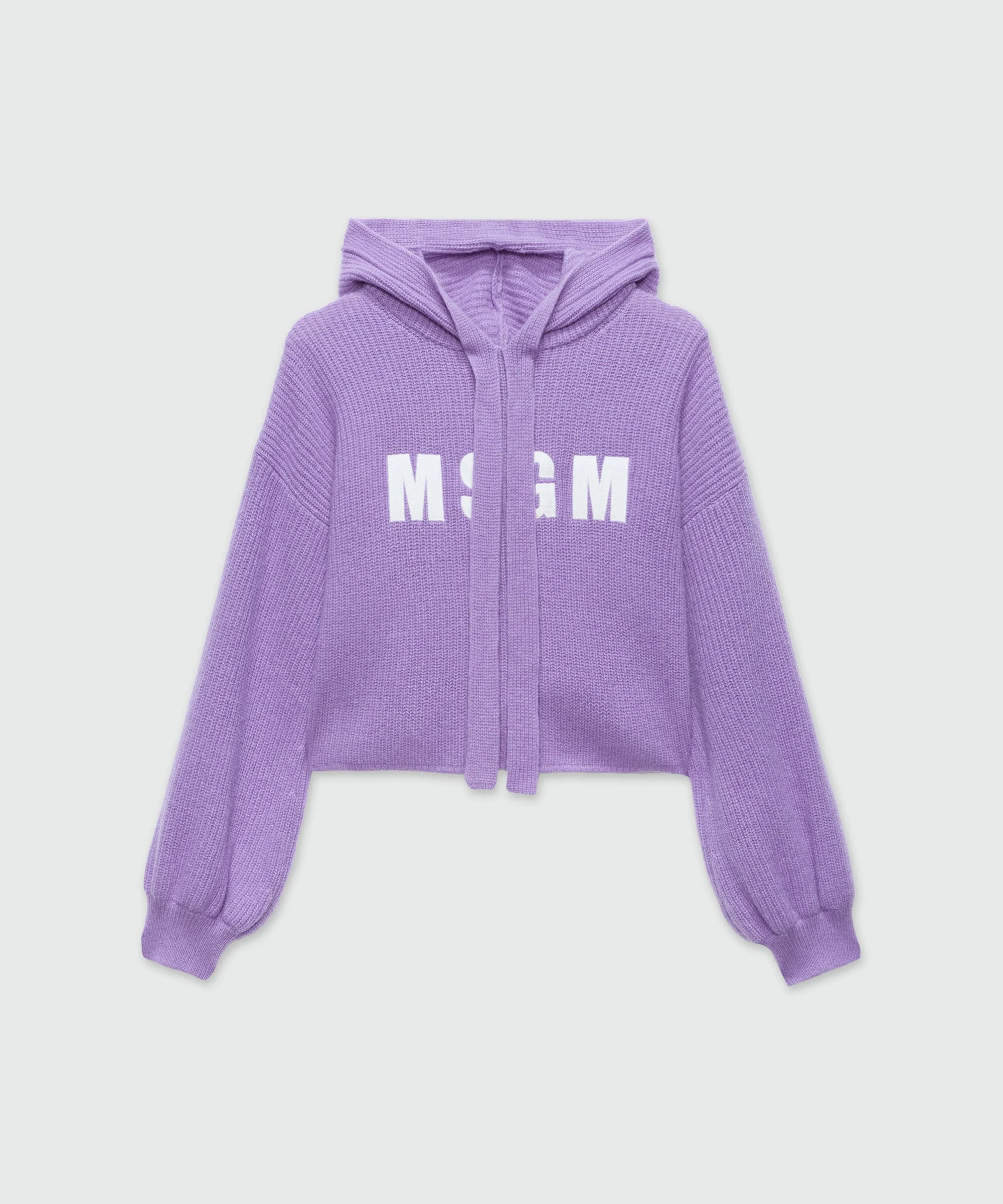 Cashmere blend hooded sweater with contrasting MSGM logo embroidered on the front. Long, wide sleeves with dropped shoulders and ribbed cuffs. Oversized fit. Model wears size S/40. CODE: 3941MDM219-257785-72 Details and fit - 70% WO / 30% WS