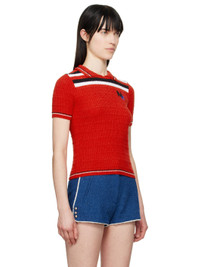 Rib-knit cotton-blend boucle polo. Stripes throughout. · Spread collar · Logo graphic embroidered at chest · Logo embroidered at back Supplier color: Red 78% cotton, 22% polyamide. Made in Italy 251443F108001