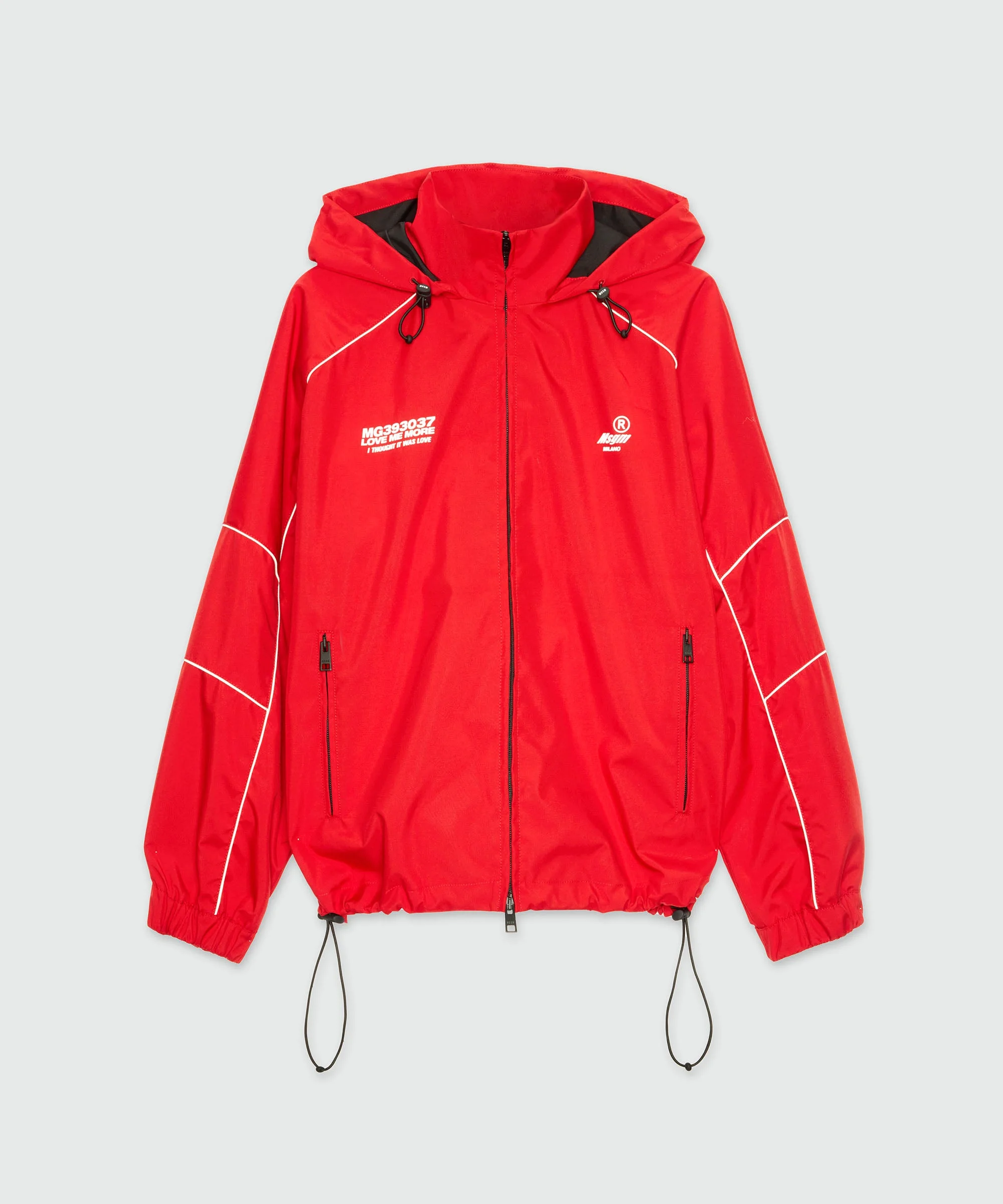 Red nylon jacket with contrasting piping