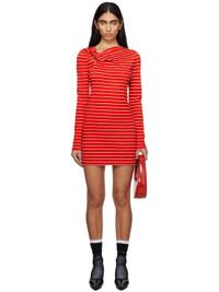 Knit stretch viscose-blend minidress. Stripes throughout. · Twisted detailing and cutout at asymmetric neck · Logo patch at back collar Supplier color: Red 83% viscose, 14% polyamide, 3% elastane. Made in Italy 251443F052006