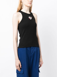 ribbed heart-embellished top Highlights - Black - Stretch-cotton - Ribbed knit - Embroidered logo to the rear - Heart motif - Crystal embellishment - Round neck - Sleeveless - Racerback - Straight hem Made in Italy Composition Body: Cotton 95%, Elastane 5% glass 65%, PVC 20%, Brass 15% SIZE & FIT Model measurements Height 5 ft 10 in(1.78 m) Bust/Chest 29.13 in(74 cm) Hips 35.43 in(90 cm) Waist 23.62 in(60 cm) FittingInformation Designed for a close fit throughout Made from a midweight stretch fabric, this piece offers elasticity and flexibility when worn This piece fits true to size – take your usual size Washing instructions Hand Wash
