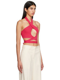 Rib knit viscose-blend tank top. · Wrap construction · Cut out at chest · Self-tie fastening at hem · Halter strap · Low back Supplier color: Fuchsia 70% viscose, 30% polyester. Made in Italy 231443F111004