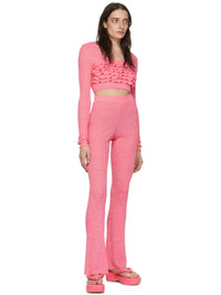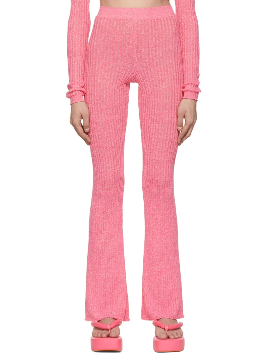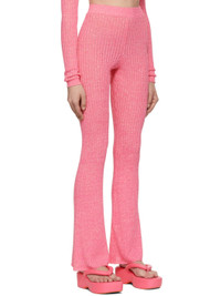 Rib knit linen and polyester-blend lounge pants. Elasticized waistband. Supplier color: Pink 69% linen, 31% polyester.