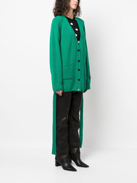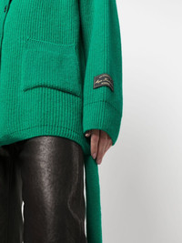 ribbed-knit wool-blend cardigan Highlights - Jade green - Wool-cashmere blend - Knitted construction - Ribbed knit - Logo patch at the sleeve - Draped strap detailing - Plunging v-neck - Front button fastening - Long raglan sleeves - Two front patch pockets - Straight hem Made in Italy Composition Wool 70%, Cashmere 30% SIZE & FIT Model measurements Height 5 ft 9 in(1.76 m) Bust/Chest 33.07 in(84 cm) Hips 34.64 in(88 cm) Waist 25.59 in(65 cm) FittingInformation Designed to be unstructured, offering a loose fit throughout Made with a midweight knit, this piece offers some stretch This piece fits true to size – take your usual size Washing instructions Hand Wash