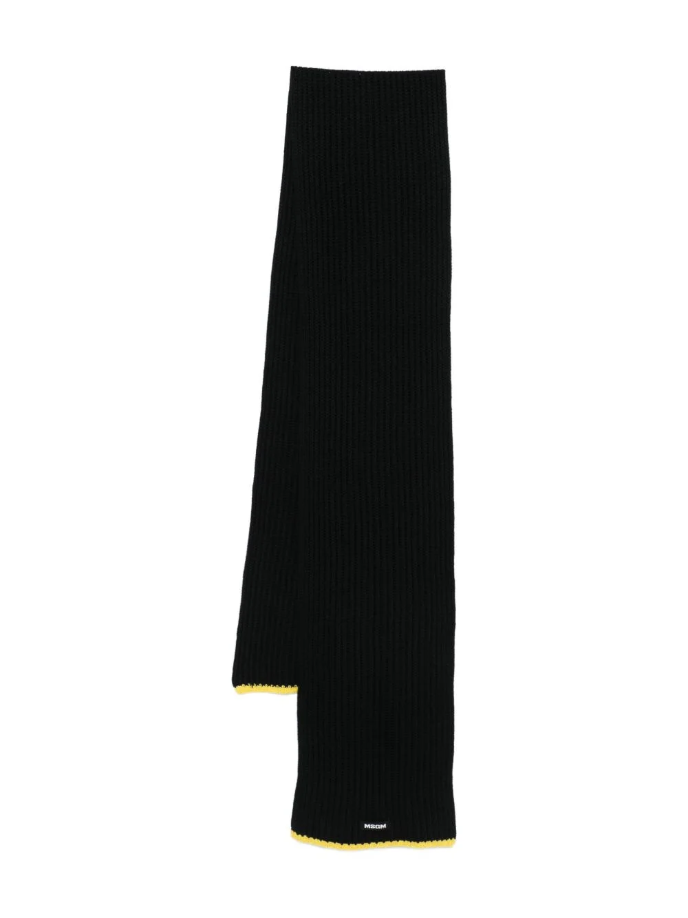 ribbed-knit scarf Highlights - Black - Ribbed knit - Yellow trim - Rectangular shape Made in Italy Composition Viscose 35%, Wool 30%, Polyamide 30%, Cashmere 5% SIZE & FIT Measurement LENGTH 90.55 in(230 cm) WIDTH 11.81 in(30 cm) Washing instructions Dry Clean Only