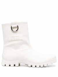 round toe ankle boots white leather slip-on style ankle-length round toe silver-tone hardware flat rubber sole Made in Italy Composition Sole: Rubber 100% Lining: Leather 100% Outer: Leather 100% SIZE & FIT Measurement CIRCUMFERENCE 11.02 in(28 cm) HEEL 1.96 in(5 cm) HEIGHT 6.29 in(16 cm) Sole height 1.18 in(3 cm)