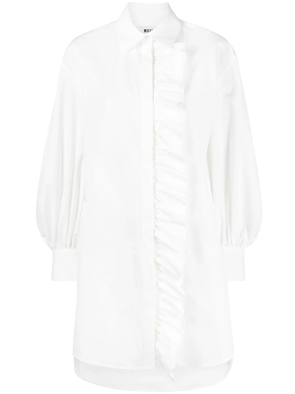 ruffle detail shirt dress There's no bad day a nice dress can't fix. Crafted with a ruffle detail to the front, this shirt dress from MSGM will boost your looks and your mood. Feeling better already, aren't you? Made in Italy Composition Cotton 100% SIZE & FIT Model measurements Height 5 ft 10 in(1.78 m) Bust/Chest 31.49 in(80 cm) Hips 37 in(94 cm) Waist 23.62 in(60 cm) FittingInformation This piece fits true to size. We recommend you get your regular size Cut for a loose fit Made with a mid-weight non-stretch fabric Washing instructions Hand Wash