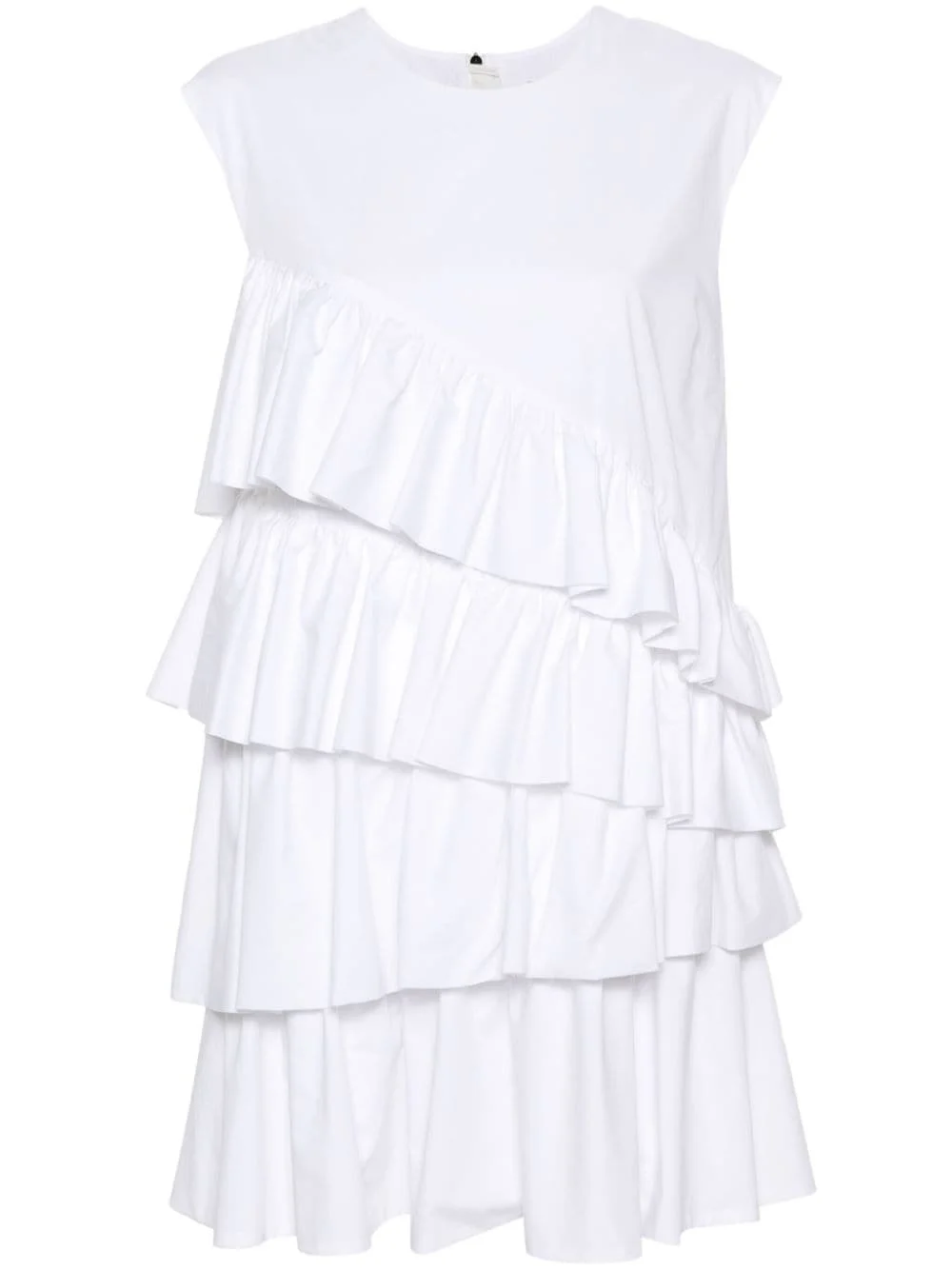 ruffle-detailing cotton dress Highlights - Optical white - Cotton - Ruffled detailing - Round neck - Sleeveless - Flared hem - Thigh-length Made in Italy Composition Cotton 100% SIZE & FIT Model measurements Height 5 ft 11 in(1.8 m) Bust/Chest 30.7 in(78 cm) Hips 35.03 in(89 cm) Waist 24.4 in(62 cm) FittingInformation Designed to be unstructured, offering a loose fit throughout Made from a midweight non-stretch fabric This piece fits true to size – take your usual size Washing instructions Hand Wash