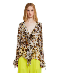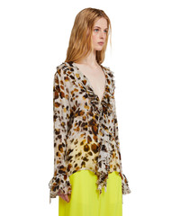 Ruffled blouse with georgette "watercolor leopard" print