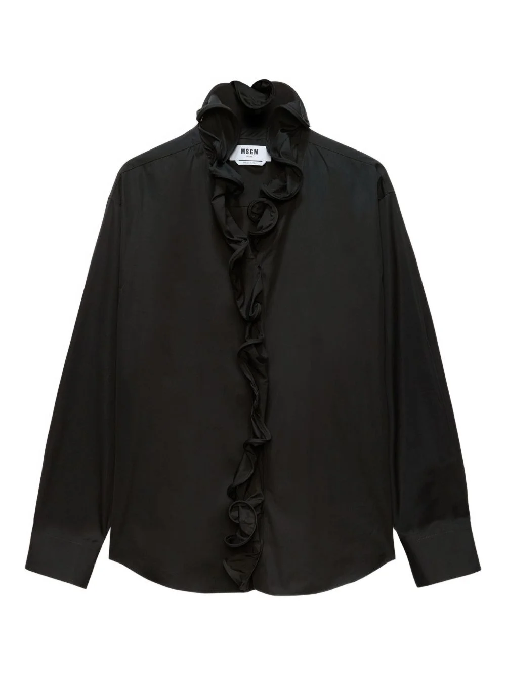 ruffled collar shirt Highlights - Black - Ruffled collar - Long sleeves - Front button fastening - Relaxed fit - Curved hem Made in Italy Composition Fabric 100% Washing instructions Read Manufacturer Guidelines