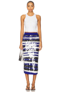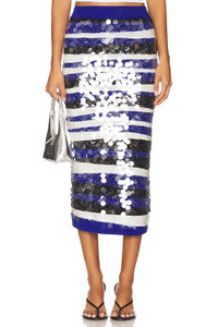 - Self 1: 100% cotton Self 2: 100% polyester - Hand wash - Unlined - Elasticized waistband - Logo detail at back - Midweight knit fabric with sequin embellishment at front - Skirt measures approx 35" in length - Revolve Style No. MSGX-WQ29 - Manufacturer Style No. 3842MDD190 257279