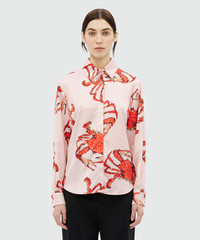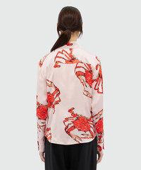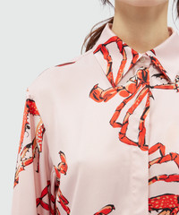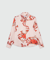 Viscose satin shirt with all-over "King crab" graphics printed. Classic collar and hidden front buttoning. Long sleeves with cuffs and buttons. Rounded hem. Regular fit. The model wears size S/40. CODE: 3841MDE24A-257152-12 Details and fit - 100% VI